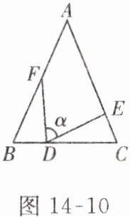 7. 如图 14 - 10,$\angle B = \angle C$,$BF = CD$,$BD = CE$,则 $\angle\alpha$ 与 $\angle A$ 的关系是( )