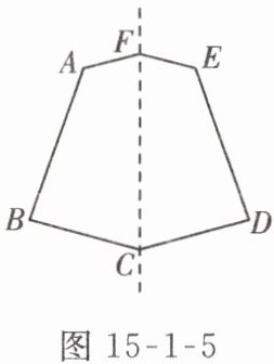 6. 如图 15-1-5,六边形$ABCDEF$是轴对称图形,$CF$所在的直线是它的对称轴. 若$\angle AFC+\angle DCF = 150^{\circ}$,则$\angle AFE+\angle BCD = $______.