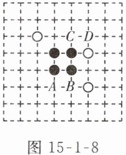 如图 15-1-8 是两位同学的部分对弈图,轮到白方落子,观察棋盘,白方若落子于点______的位置,则所得的对弈图是轴对称图形.(填写$A$,$B$,$C$,$D$中的一处即可,$A$,$B$,$C$,$D$位于棋盘的格点上)