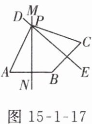 9. 如图15-1-17,直线MN和DE分别是线段AB、BC的垂直平分线,它们交于点P. 若PA= 6cm,则PC= ______.