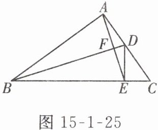 7. 如图15-1-25,在△ABC中,点E是BC边上的一点,连接AE,BD垂直平分AE,垂足为F,交AC于点D,连接DE.
