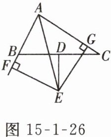 如图15-1-26,已知在△ABC中,BC边上的垂直平分线DE与∠BAC的平分线交于点E,EF⊥AB交AB的延长线于点F,EG⊥AC交AC于点G. 求证: