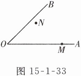 【教材 P71 习题 12 变式】如图 15 - 1 - 33,两条公路 AO,BO 交于点 O,村庄 M,N 的位置如图所示,M 在公路 OA 上,为促进经济发展,有关部门决定修建一个蔬菜批发市场 P,选址要使市场到两条公路的距离相等,且到两村庄的距离也相等,请帮忙确定点 P(要求:点 P 在∠AOB 内部,尺规作图,不写作法,保留作图痕迹).