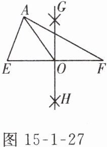 1. 如图 15 - 1 - 27,在△AEF 中,尺规作图如下:分别以点 E,F 为圆心,大于 $\frac{1}{2}EF$ 的长为半径作弧,两弧相交于 G,H 两点,作直线 GH,交 EF 于点 O,连接 AO,则下列结论正确的是( )