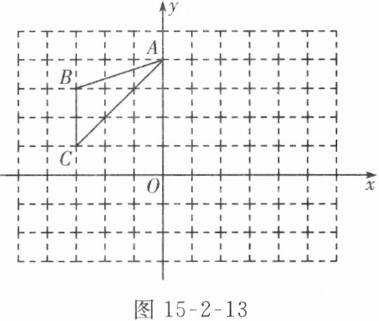5. 如图 15-2-13,在平面直角坐标系中,$ \triangle ABC $ 三个顶点的坐标分别为 $ A(0,4),B(-3,3),C(-3,1) $。
