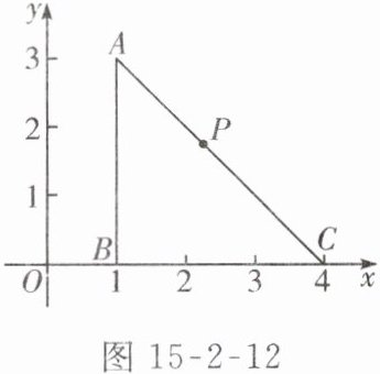4. 如图 15-2-12 所示,在平面直角坐标系中,点 $ P(a,b) $ 为 $ \triangle ABC $ 的边 $ AC $ 上一点,将 $ \triangle ABC $ 先向左平移 $ 2 $ 个单位长度,再作关于 $ x $ 轴的轴对称图形,得到 $ \triangle A'B'C' $,则点 $ P $ 的对应点 $ P' $ 的坐标为______。