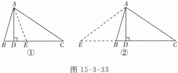 解:如图15-3-33②,延长$DB到点E$,使$BE = AB$,连接$AE$。