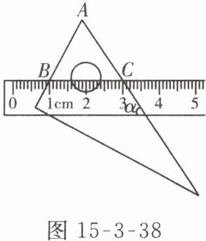 6. 将含$30^{\circ}$角的直角三角尺和直尺按如图 15 - 3 - 38 所示的方式放置,已知$\angle\alpha = 60^{\circ}$,点$B$,$C处的刻度分别为1cm$,$3cm$,则线段$AB$的长为______$cm$。