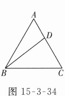 1. 【几何直观】如图 15 - 3 - 34 所示,$\triangle ABC$是等边三角形,点$D在AC$边上,$\angle DBC = 40^{\circ}$,则$\angle ADB$的度数为( )