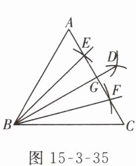 3. 如图 15 - 3 - 35 所示,$\triangle ABC$是等边三角形,以点$B$为圆心,任意长为半径画弧,交$AC于点E$,$F$,再分别以$E$,$F$为圆心,大于$\frac{1}{2}EF$长为半径画弧,两弧交于点$D$,连接$BD交AC于点G$,$\angle ABG$的度数为( )