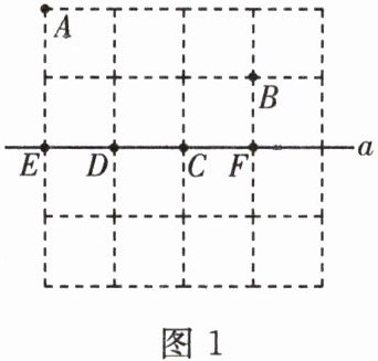 2. 在如图 1 所示的 $ 4 × 4 $ 的正方形网格中,有 $ A $,$ B $ 两点,在直线 $ a $ 上求一点 $ P $,使 $ PA + PB $ 的值最小,则点 $ P $ 应选在( )