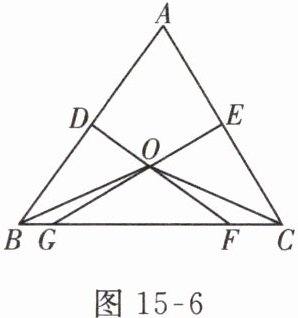 5. 如图15-6所示,在△ABC中,点O是边AB和AC的垂直平分线FD,GE的交点,若∠BOC= 130°,则∠GOF的度数为( )