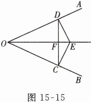 15. 如图15-15,已知E是∠AOB的平分线上一点,EC⊥OB,ED⊥OA,垂足分别为C,D,连接CD,交OE于点F.