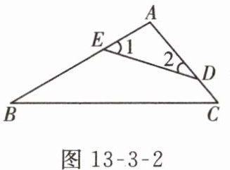 3. 【教材 P13 练习 2 变式】如图 13 - 3 - 2,点 $ E $,$ D $ 分别在 $ AB $,$ AC $ 上. 若 $ \angle B = 30^{\circ} $,$ \angle C = 55^{\circ} $,则 $ \angle 1 + \angle 2 $ 的度数为( )