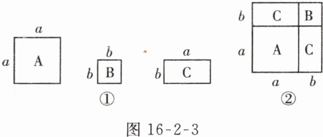 5. 如图 16 - 2 - 3①,有边长分别为$a和b(a > b)$的 A 类和 B 类正方形纸片,长为$a$,宽为$b$的 C 类长方形纸片若干张. 如图 16 - 2 - 3②,要拼一个边长为$a + b$的正方形,需要 1 张 A 类纸片、1 张 B 类纸片和 2 张 C 类纸片. 若要拼一个长为$3a + b$,宽为$2a + 2b$的长方形,则需要 C 类纸片的张数为( )