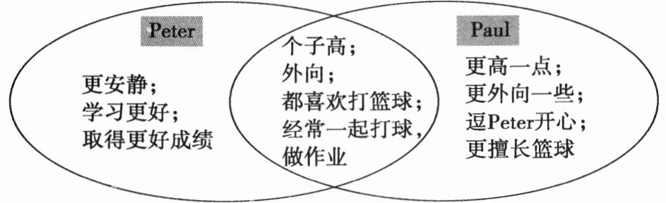 假设你是Peter,你的好朋友名字叫Paul,以下是你们的共同点和不同点。请你写一写你们的异同。