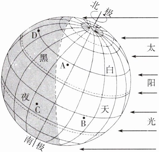 点将首先迎来黎明。(3)B点再次回到现在的位置,需要经过