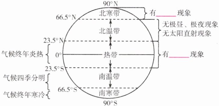 (2)①太阳光热 ②极昼、极夜 太阳直射