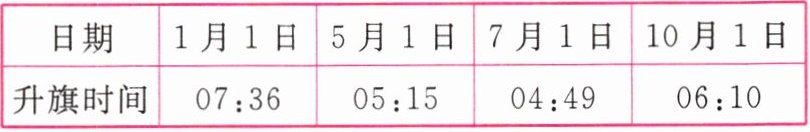 |升旗时间|07:36|05:15|04:49|06:10|