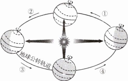 2022 年 2 月 4 日(立春),第二十四届冬奥会在国家体育场盛大开幕,开幕式以二十四节气进行倒计时,中国式浪漫惊艳了世界。读“地球公转示意图”,完成 4 题。
