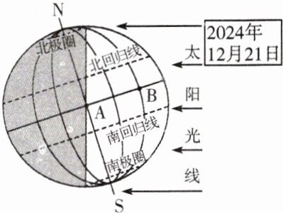 )①这一天是我国一年中正午影子最短的一天 ②这一天是一年中天安门广场升旗仪式开始最晚的一天 ③“梦断天鸡喔,起看旭日升”的地点是 A,A 地比 B 地的时间早 ④A、B 两地都能体验“坐地日行八万里,巡天遥看一千河” ⑤两架飞机同时从 A、B 两地分别向南、向北飞行,最终各绕地球一周回到原地