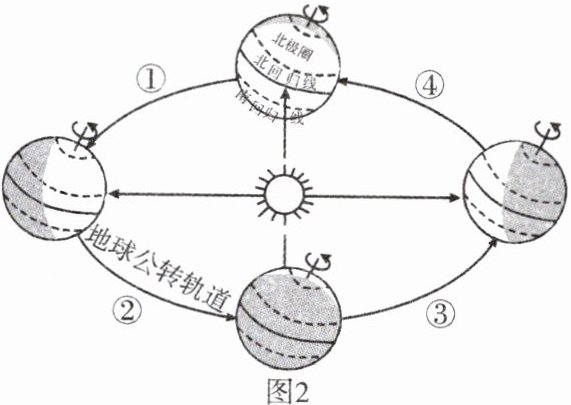 8. 立夏节气前后,地球运行至图 2 中的(