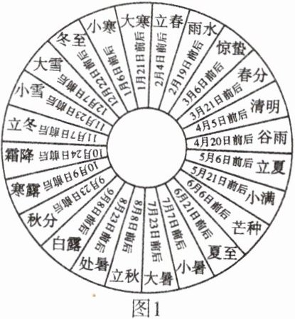 二十四节气被誉为中国“第五大发明”,于 2016 年 11 月 30 日正式列入《人类非物质文化遗产代表作名录》。图 1 为“我国二十四节气示意图”,图 2 为“地球公转示意图”。据此回答 8~9 题。