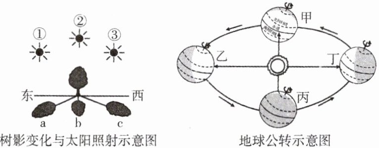 我们身边的很多现象与地球运动有关。长春某中学地理兴趣小组的同学们对树影的变化进行了观察,并绘制了简单示意图。据此回答 7~8 题。