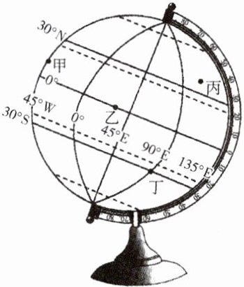 5. 图中甲、乙、丙、丁四地中,既位于北半球又位于西半球的是(
