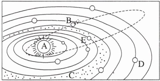 2.B 点拨:太阳系八颗行星按照距离太阳由近及远的顺序依次为水星、金星、地球、火星、木星、土星、天王星、海王星。读图可知,M行星位于木星与地球之间,为火星,故选B。 3.C 点拨:N位于木星轨道以内,火星(M)轨道以外,是小行星带,故选C。 4.A 点拨:太阳系的行星具有生命必须具备适宜的大气厚度与大气成分、适宜的光照和温度、充足的液态水,距日远近适中以及质量和体积适当是具有大气层和液态水及适宜温度的条件,故选A。