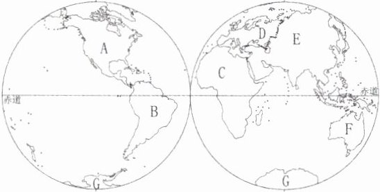 洲。(填字母)(4) 赤道穿过岛屿部分的大洲是