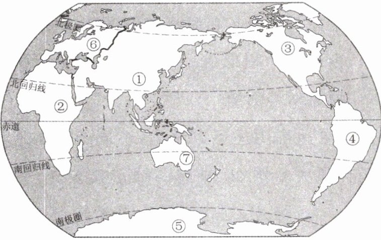 16. 读“大洲和大洋的分布图”,回答下列问题。