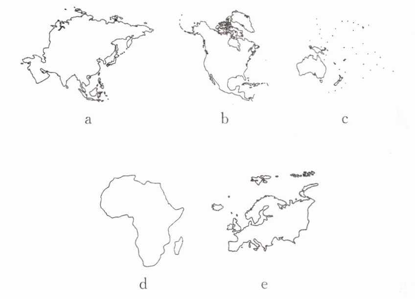 D 点拨:图中a为亚洲,b为北美洲,c为大洋洲,d为非洲,e为欧洲。亚洲和欧洲连在一起,合称亚欧大陆,是世界上最大的大陆。故选D。