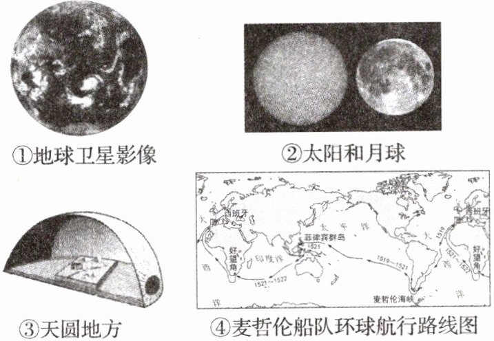 古代人凭直觉认为天是圆的,地是方的→人们根据太阳、月球的形状,推测地球也是一个球体→