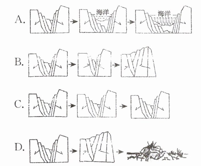 7. 在下图几组岩层运动过程示意图中,能正确表示东非大裂谷未来趋势的是(