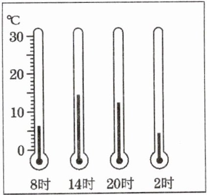 2. 读“某中学气象小组某天的气温观测图”,根据图中的测定结果,该天的平均气温约为(