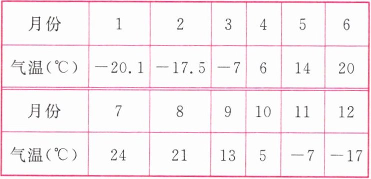 |气温(℃)|-20.1|-17.5|-7|6|14|20|
