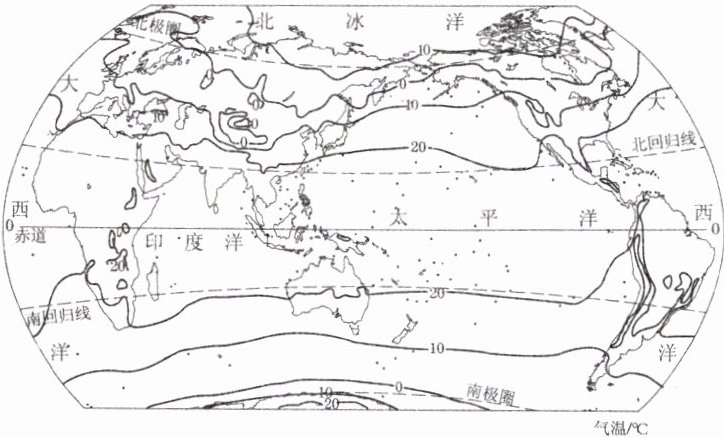 半球的等温线比较平直。(3) 南半球20℃等温线经过的大洲有