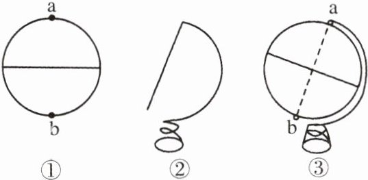 10. 图③中,把乒乓球用倾斜的铁丝穿起来,倾斜的铁丝两头,即a处和b处,用胶布裹几圈固定。关于铁丝ab的说法,正确的是(