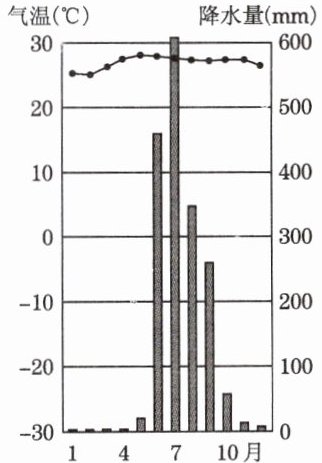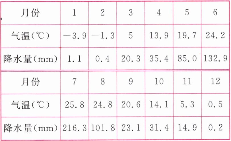 (4)降水集中在夏季,冬季降水少;冬季最低气温在0℃以下