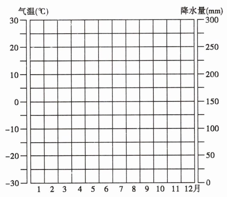 (5)温带季风气候 中国的东北部,俄罗斯的东南部,朝鲜半岛等地 点拨:本题考查绘图能力及根据气温、降水状况判断气候类型及其分布的能力。