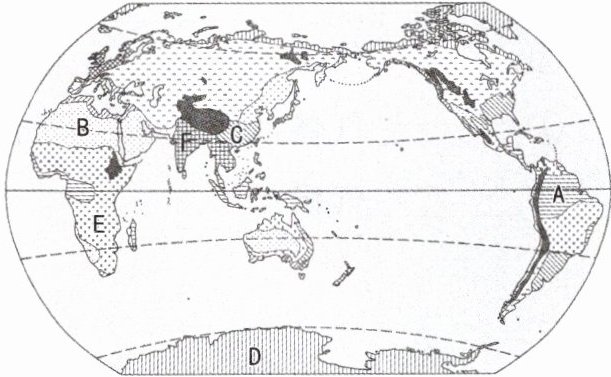所示的大陆。(5)E地是