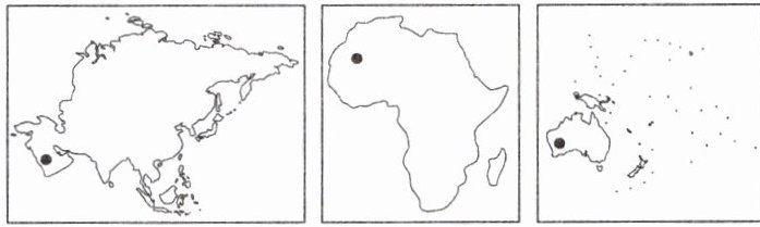 7. 三个大洲的轮廓图中加点地区的气候类型均为(