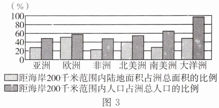 地区。(2)海陆位置与人口分布。从海陆位置看,图 2、图 3 反映出世界人口的分布规律是