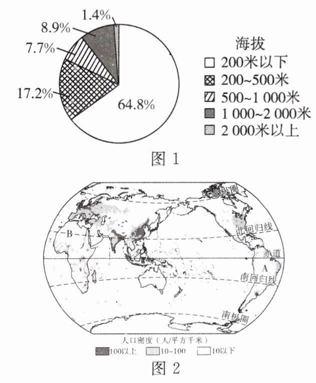 纬度地带。(4)从图 2 可以看出,世界上人口最稠密的地区有