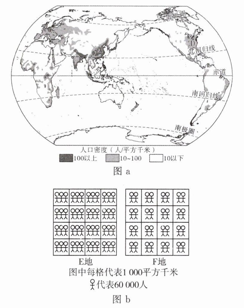 。(3)图 b 是 E、F 两地的人口和面积情况,据图算出 E 地的人口密度是每平方千米