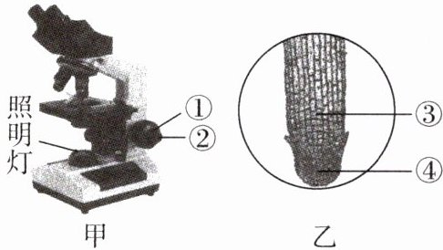 12. 【创新题】随着科技发展,显微镜的功能更加完善,操作更加便捷。图甲是双目显微镜,在原反光镜的位置换装上照明灯;图乙是某同学观察根尖永久玻片标本时看到的物像。下列叙述错误的是( )