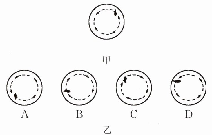 11. 如图甲所示为显微镜视野内某生物体所处位置及运动路线,则此生物体的实际位置及运动路线应为图乙中的( )