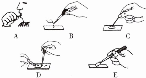 12. 下图为制作人的口腔上皮细胞临时装片的操作图。