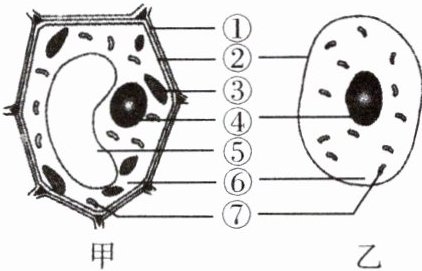 (2)图______(填“甲”或“乙”)是在显微镜下观察到的人的口腔上皮细胞结构图,理由是它无液泡、叶绿体和______(填名称)。
